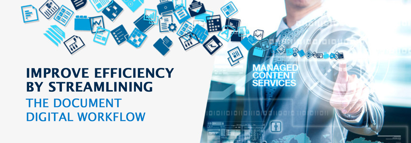 MCS is a one-stop service that offers consultation-based suggestions for improving work efficiency along with exclusive software for content management, MFPs for data input and output, and document digitisation service.